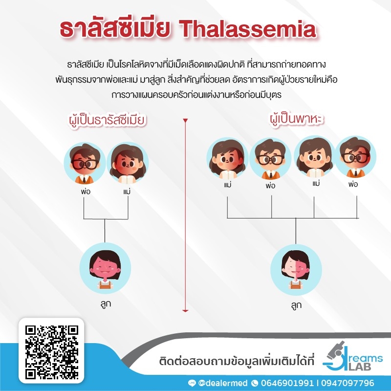 ธาลัสซีเมีย เป็นโรคโลหิตจางที่มีเม็ดเลือดแดงผิดปกติ ที่สามารถถ่ายทอดทางพันธุกรรมจากพ่อและแม่มาสู่ลูก ทำให้มีอาการซีดเรื้อรังเป็นอีกโรคที่พบมากในประเทศไทย👪สิ่งสำคัญที่ช่วยลดอัตราการเกิดผู้ป่วยรายใหม่คือ การวางแผนครอบครัวก่อนแต่งงานหรือก่อนมีบุตร